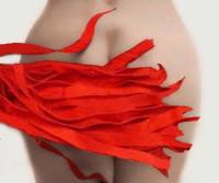 Bild: Flogger aus weichem Leder - das Bild zeigt symbolisch, wie ein solcher Flogger das Gesäß trifft.
